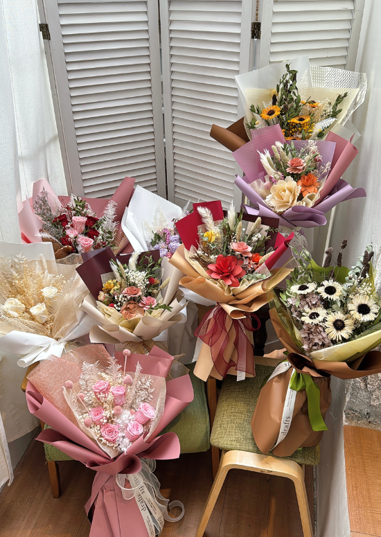 Floral arrangements start at P499 for a mini bouquet. If you opt for preserved flower arrangements, prices range from P1,399 to P4,499. A perfect, thoughtful gift that can last for years and fits different budgets.
