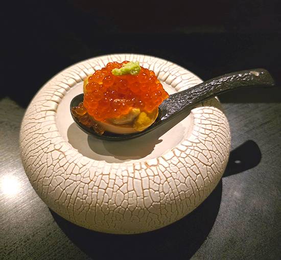 He says, “Yakitori omakase is about serving each skewer at its best moment. We focus on the basics: fire, salt, and timing, keeping everything simple and precise.” He seasons his skewers with Himalayan pink salt and Okinawa salt, both known for their deep umami flavor and gentle salinity, enhancing the natural flavor of the meats (mostly chicken) without overpowering it.