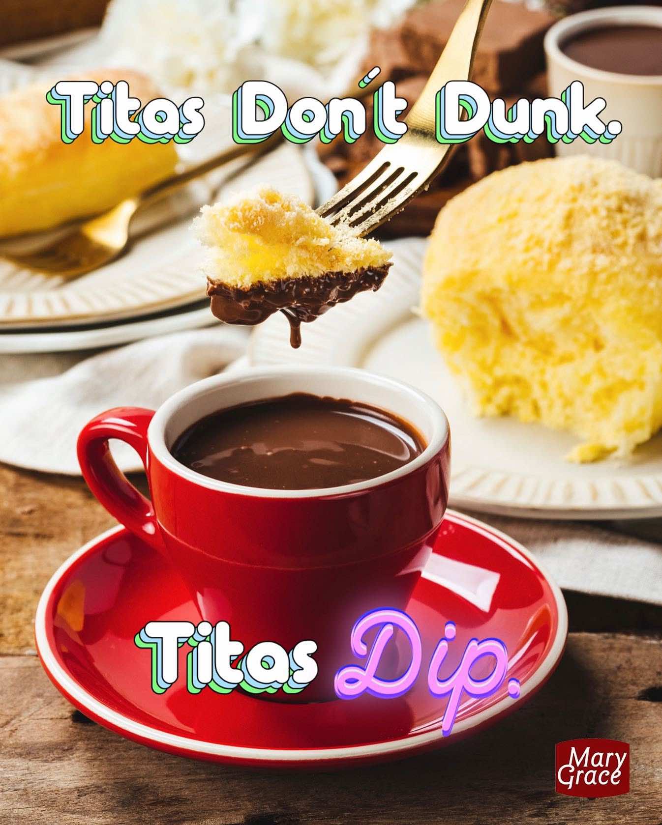 Mary Grace’s hit menu items are its cheese roll and ensaymada, but they taste even better when they are dipped in their signature hot chocolate. The restaurant made a hilarious reference to it, saying, “Titas don’t dunk. Titas dip.”