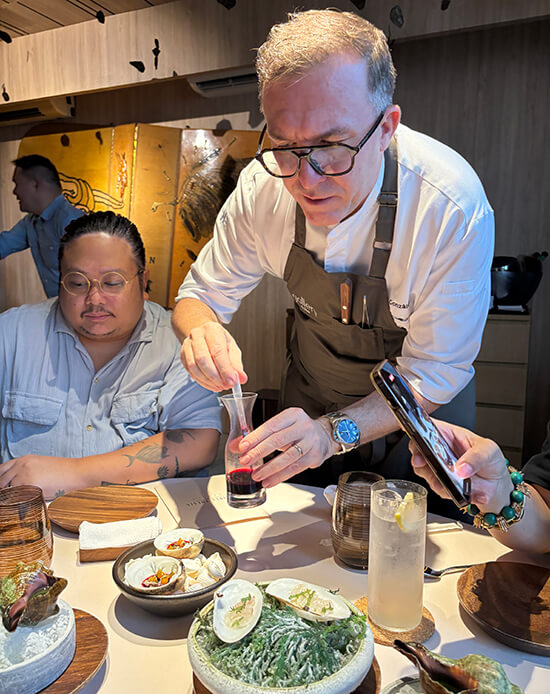 At my table was Aaron Isip, who predicted that Gonzalez would get two stars for Gallery. Days later, that prophecy would almost come true — Gonzalez earned one each for Gallery (an honor the Spanish chef shared with Carlos Villaflor) and Asador Alfonso (one he shared with Rodrigo Osorio). Cantabria by Chele Gonzalez and Enye by Chele Gonzalez would also be included in the Michelin Guide. Isip himself would be recognized with a star for Kasa Palma, his restaurant in Makati.