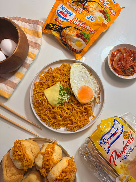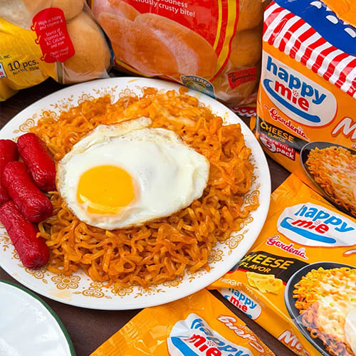With Happy Mie, all you need is to grab a pack or two, a soft slice of Gardenia Classic White Bread, your favorite Gardenia Premium Pandesal, or a fried egg with that golden, velvety yolk, and maybe add a few sausages––or better yet, enjoy the Cheese Mi Goreng on its own. Your cravings will surely be satisfied.