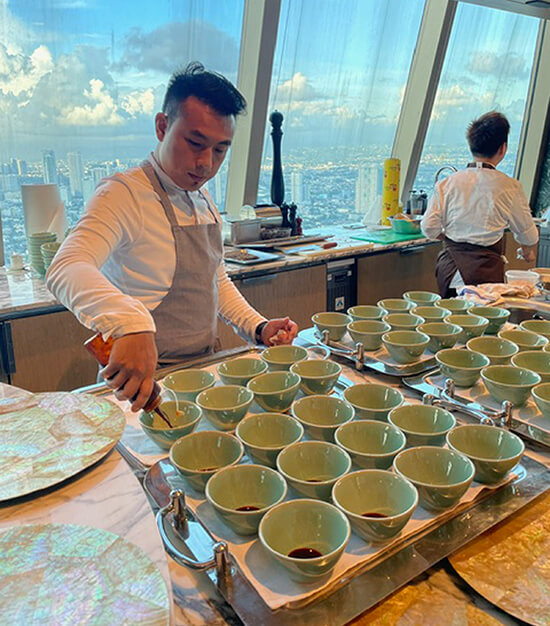 We did a kitchen tour where I must say I peppered chef Vicky with questions about how he reconciled his French training in top restaurants like Boulud with his return to his Cantonese roots. Chef Vicky has a Michelin-starred restaurant in Hong Kong named Vea and another one, Wing which is ranked among the top 50 restaurants in Asia. In addition, he was ranked 35 out of the 100 Best Chefs in the world!