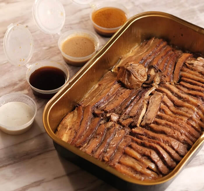 They’re not kidding—the roast beef really melts in your mouth. It’s so tender and so flavorful. It also comes with garlic confit and a variety of sauces: au jus, gravy, truffle demi glace and garlic aioli. Enjoy it with mashed potato and/or rice, and I even love it stuffed in pandesal. It’s available in four sizes—Sharing, Family, Party, or Feast.
