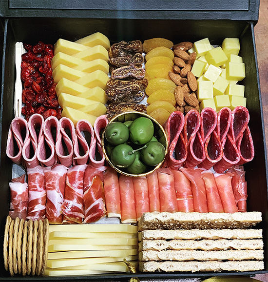 At home, Mike is in charge of preparing the food with his cook, while Vanessa personally curates the charcuterie boxes, which are perfect for Zoom events with their generous and aesthetic mix of deli meats, sliced cheeses, olives, nuts, dried fruits, and whole-grain crackers.