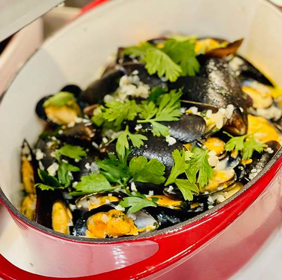Pinch’s mussels are the same: large, briny-sweet morsels swimming in that savory white-wine sauce, which we’d then sop up with large hunks of bread so as not to let a drop go to waste.