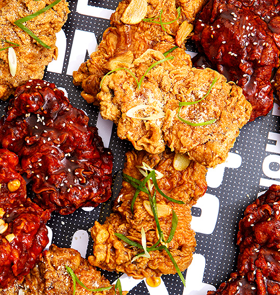 For your initial order I suggest trying all five flavors to find which one is your favorite, and you don’t even need plates or cutlery; your order comes with plastic gloves so you can hold and munch on your fried chicken as you binge-watch the latest K-drama.