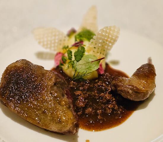 KARLA: Le Pigeon was a roasted pigeon breast, well-seasoned, tender, juicy and perfectly cooked to medium. It was served with the leg confit, pommes puree and salmi sauce with pigeon liver.