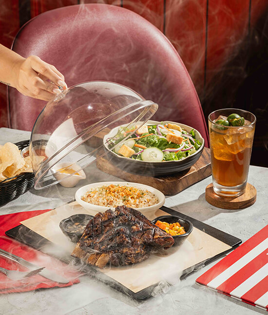 Beyond the main plates, there is also a bit of theater at the table. The Smokey Riblets arrive under a cloche; once lifted, a dramatic plume of smoke escapes, adding a sense of occasion before the first bite.