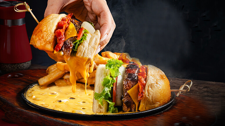 The Signature Burger lands on a sizzling plate with queso fundido, adding a warm, melted layer to an already familiar favorite. Drinks get a lighter, more playful update with Fizzy Pop—a soda-based mix infused with fruit flavors.