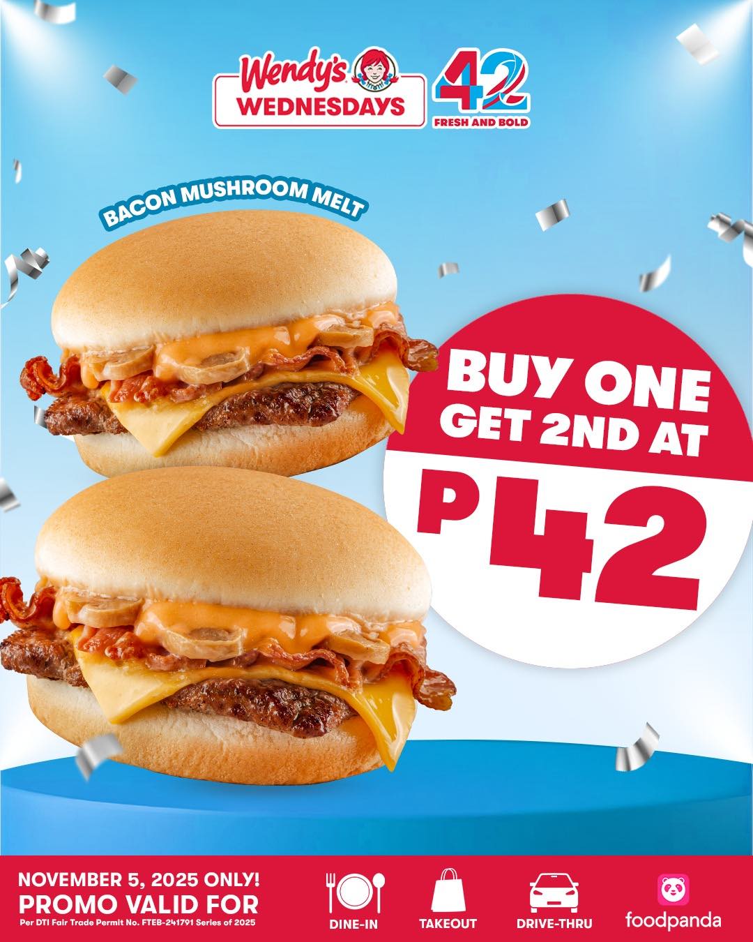 Wendy's is offering its bestselling Bacon Mushroom Melt for only P42 today, Nov. 5, to mark its 42nd anniversary.
