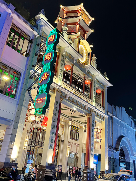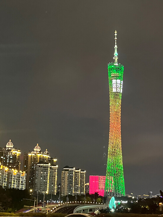 The Canton Tower, with its unique design of a latticed slim waist, has become a symbol of Guangzhou’s modern development, rising to 600 meters as the tallest in China and the third tallest tower in the world, offering multiple observation levels and entertainment facilities. It’s an impressive silhouette which we viewed from the riverfront where you can also see the picturesque Haixin Bridge, the first pedestrian landscape bridge across the Pearl River in the central business district. An impressive silhouette against the sky during the day, it transforms into a spectacular light show at night with ever-changing patterns and colors.
