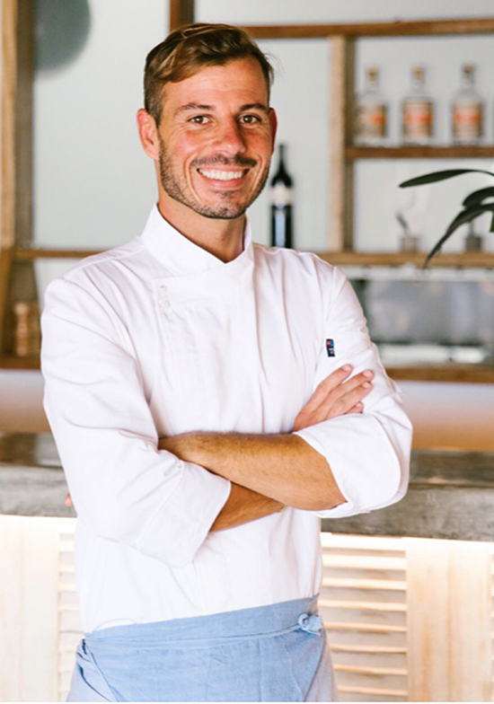 We’re served a prawn carpaccio seafood paella, which is a mouthful to say. “I tried to do two in one,” notes chef Luis, “part carpaccio, part paella.” It’s cooked in a prawn bisque and topped with a flattened, fluffy layer of prawns and served with an aioli sauce that you swirl into the rice. Delicious and, indeed, the rice is a little different.