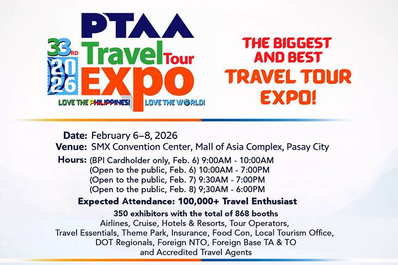 PTAA Travel Tour Expo 2026 opens on Feb. 6 at SMX Convention Center