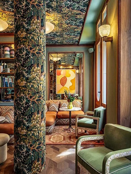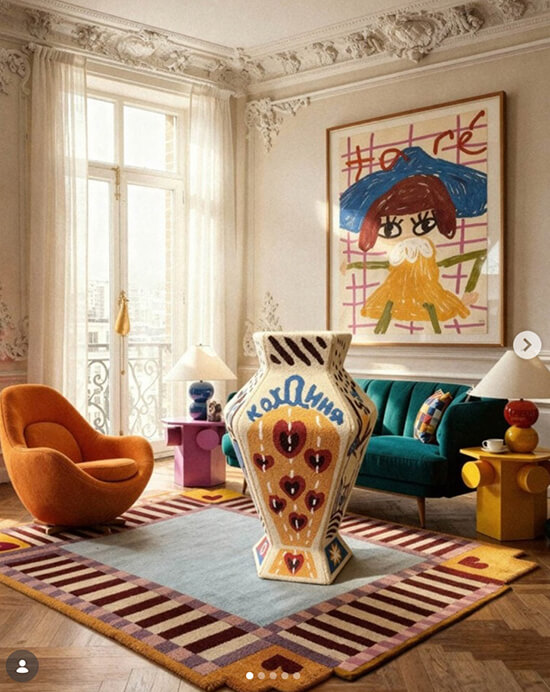 Neo-Folklore highlights local traditions, crafts and cultural identity, reimagined for modern living. Reflecting the desire for authenticity, heritage and handmade design in a globalized world, traditional craft techniques are being revived, and design is employed for cultural storytelling. There’s a shift toward reinterpreting ancestral know-how, local stories and rural myths through a tech-forward lens, blending tradition with modern digital fabrication and new materials to create vibrant, narrative-driven and emotionally resonant spaces. A warm, earthy color palette dominates, while natural materials like clay, linen, wood and wool are highlighted, alongside tribal or folk-inspired patterns.