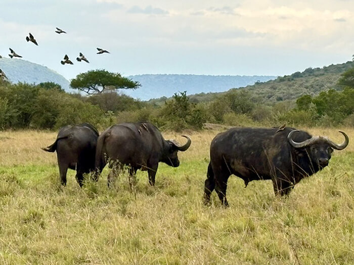 We stopped at the picturesque Malaika Waterfalls and saw the first of the Big Five: Cape buffalo, which are black like our carabaos but have short, up-curling horns that look like elaborate hairdos. Their placid appearance is misleading. They’re the deadliest threats to humans because they can attack unprovoked, as many hunters have had the misfortune of finding out.