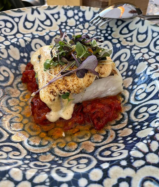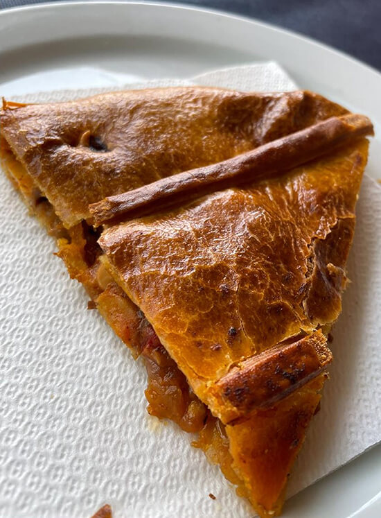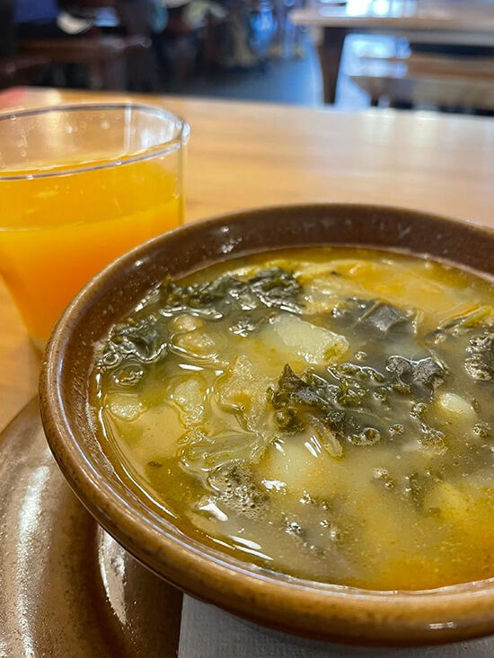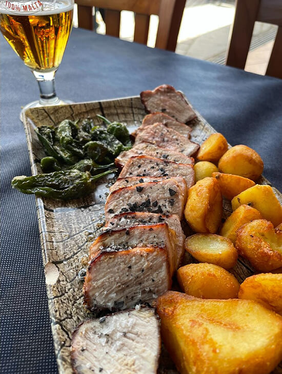 Galicia hits back with an unstoppable combo: caldo gallego, a hearty soup packed with greens, potatoes, chorizo, and pork; empanada gallega, a savory pie stuffed with tuna, cod, octopus, or meat (I had the empanada artesana gallega de pulpo, every bite a taste of heaven); and tournedó de cerdo ibérico (Iberian pork tournedó), tender grilled pork sprinkled with sea salt and whatever secret spice they have, complemented by baby potatoes and sweet green peppers (¡muy delicioso!). These dishes just scream comfort food, like a cozy evening by the Atlantic waves.