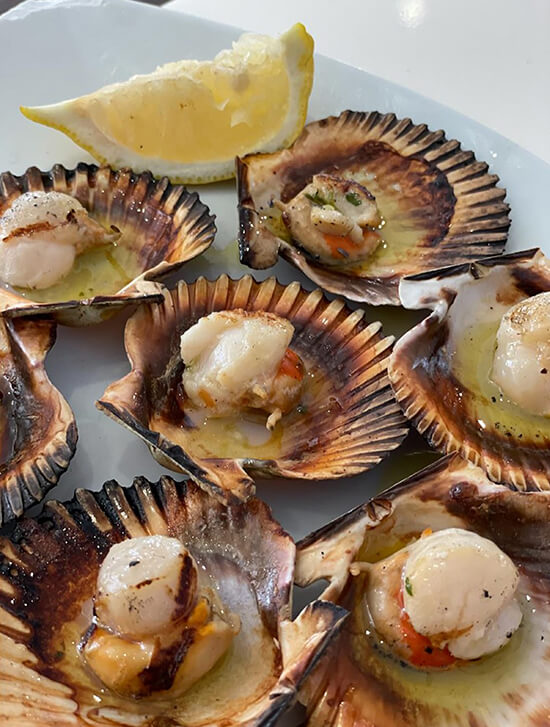 However, Galicia is the Muhammad Ali of seafood, floating like a butterfly, stinging like a bee with its vieiras (scallops) baked in their shells, and it’s a seafood lover’s dream come true. I asked if they used butter in my dish. “Sin mantequilla, Señor. Solo aceite de oliva.” Thanks to four years of high school Spanish plus 12 units in college, lo entendí completamente. Their EVOO is, of course, prime stuff, though some garlic would’ve been perfect for my Pinoy palate. Scallops are, of course, one of the symbols of the Camino de Santiago. Pilgrims and infidels alike could be flogged for not trying it at least once in Galicia.