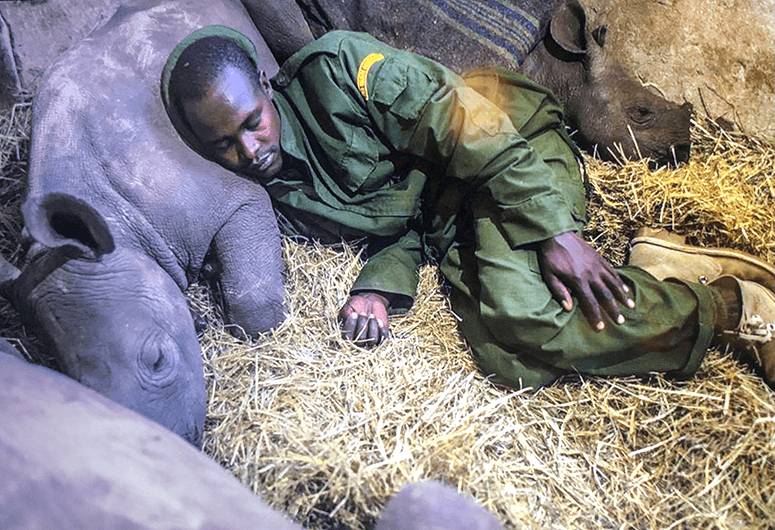 The Maasai guides at Lewa get very close to their rhinos, even sleeping next to them, almost like surrogate “mothers,” as we’re shown in a photo. Many of the rhinos are rescues, taken into care after their mothers have been poached. Now, more and more rhinos are being born at Lewa, thanks to conservation efforts, before being released into the wild. They’re very emotional and intelligent creatures, Godfrey finds. “When a guide gets into a vehicle to leave, the rhinos get mad. It’s like they’re thinking, ‘Where are you taking him?’ I think animals are more like us: they keep memories.”