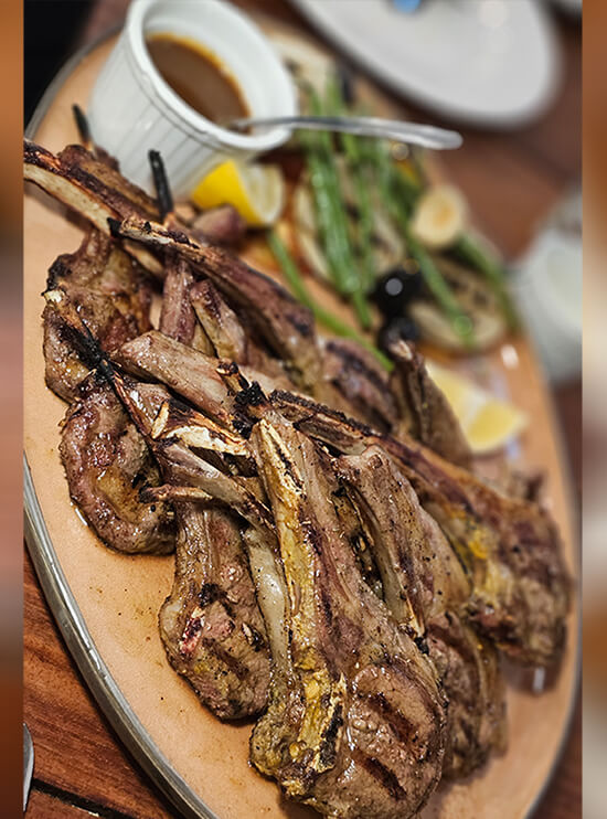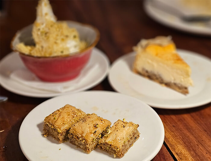 MILLIE: We were invited to dinner at Lemon and Olives Greek Taverna by childhood friends Mike & Cherry Meer who reside in the City of Pines. Together with Mike’s younger brother Ricky who was visiting from the US, we had a most pleasurable evening reminiscing days with our dads who were the best of friends. We munched on zucchini chips and feasted on spanakopita, a classic Greek savory made with phyllo pastry filled with spinach, feta cheese, and special herbs. Cherry ordered the L&O salad doused with their homemade honey lemon dressing, the grilled pampano with olives, caper,s and cherry tomatoes, and Mike’s all-time favorite grilled lamb chops! Making room for dessert, we all shared frozen Greek yogurt with kataifi, a special Mediterranean shredded dough made from corn flour and vegetable oil; a rich Baklava pastry filled with chopped nuts and sweetened with honey and a Baklava cheesecake for a perfect meal ender.