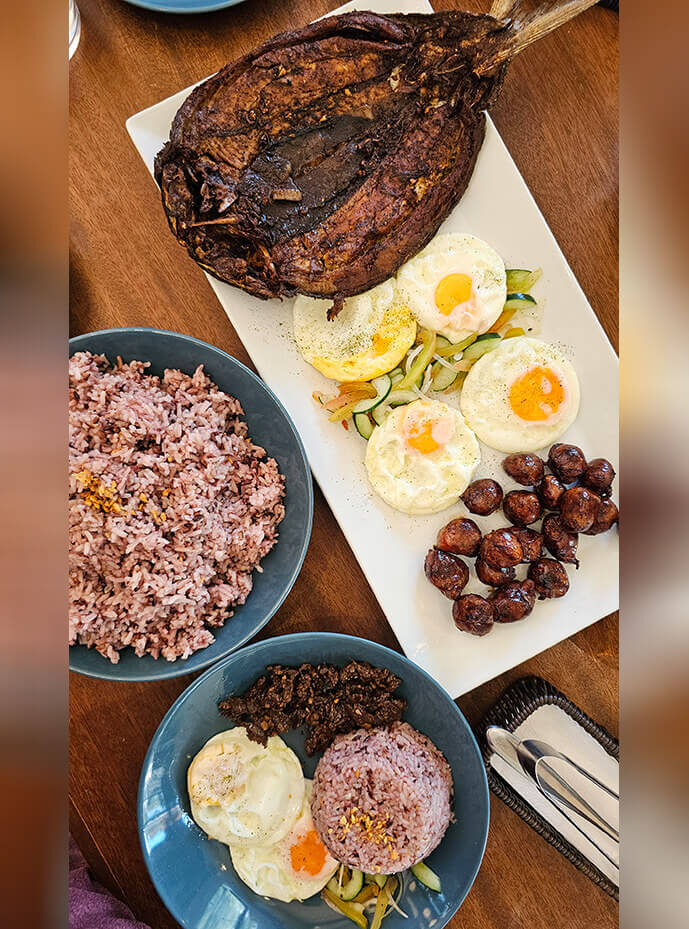 We were eager to try their all-day breakfast offerings and it was a toss-up having to decide on what to order. We ended up ordering everything nice, meaning their longganisa, beef tapa, gourmet bangus marinated with rosemary, all served with their special Balatinao rice. Balatinao rice is heirloom black rice from the mountain province. It is fibrous and will require soaking before cooking to soften the grains and allow them to become glutinous, making it easier to digest.