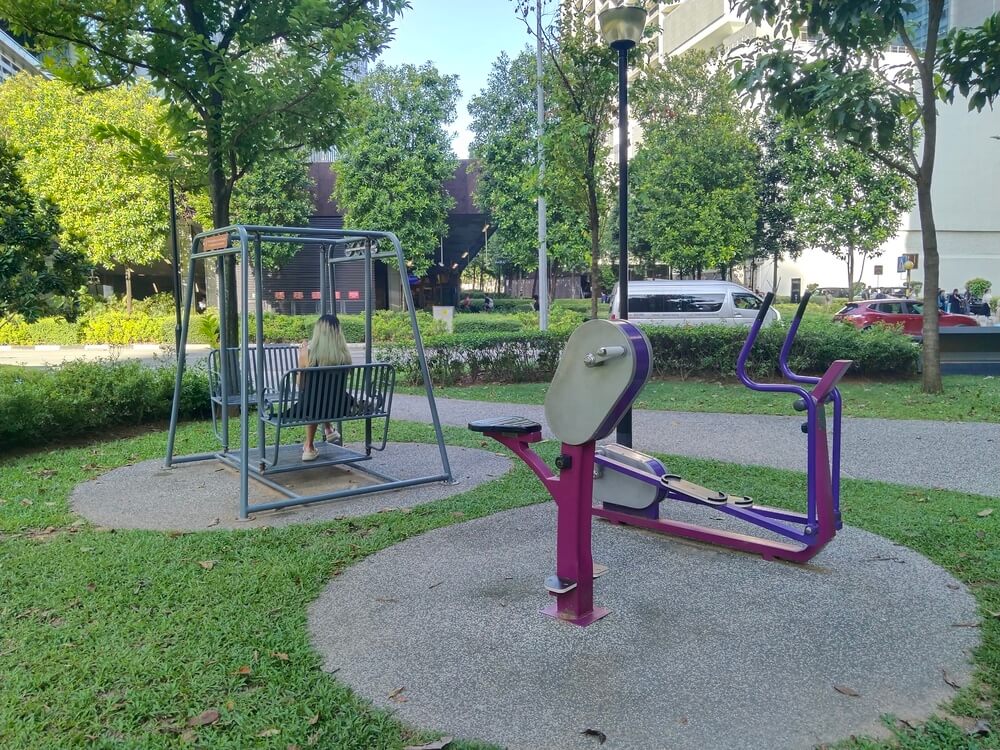 There are benches, outdoor swings, and even some exercise equipment in case you want to burn out some calories. The park’s glass-canopied plaza also doubles as a spot for yoga classes and other wellness events. On some days, you can even catch music performances and art shows!