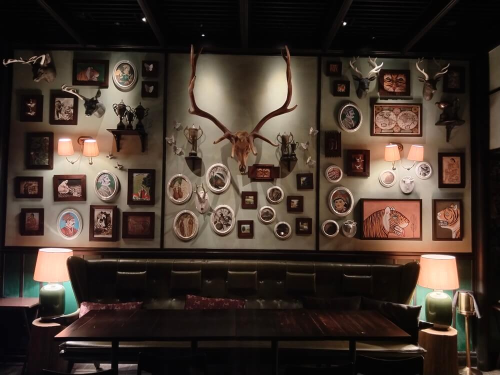 For the central dining hall, the area is divided into two themes. The first one is the Elephant Palace, and from the name itself, this section dazzles with all kinds of elephant imagery, from the stone statues to the tapestry filled with colourful parades of the majestic mammal. The second section is The Jungle Lodge, which resembles a renowned hunter's house with over-the-top decorations of artificial moose heads and artworks of tigers.