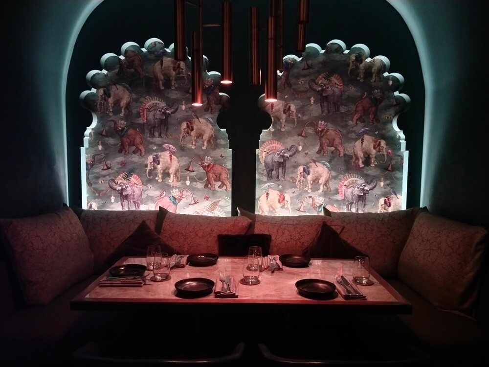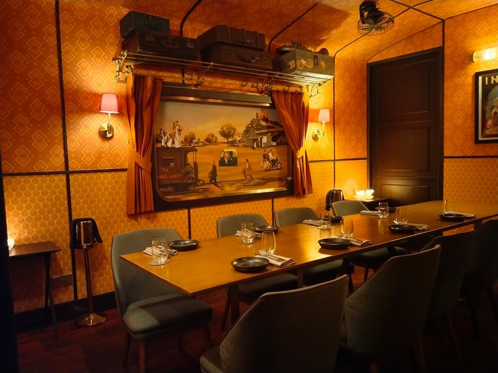 The restaurant has built a reputation around its four themed spaces that will immerse you in India's culture through meticulous decorations reminiscent of a Wes Anderson film. The dark lighting further adds to the intimate and romantic ambience of the restaurant.