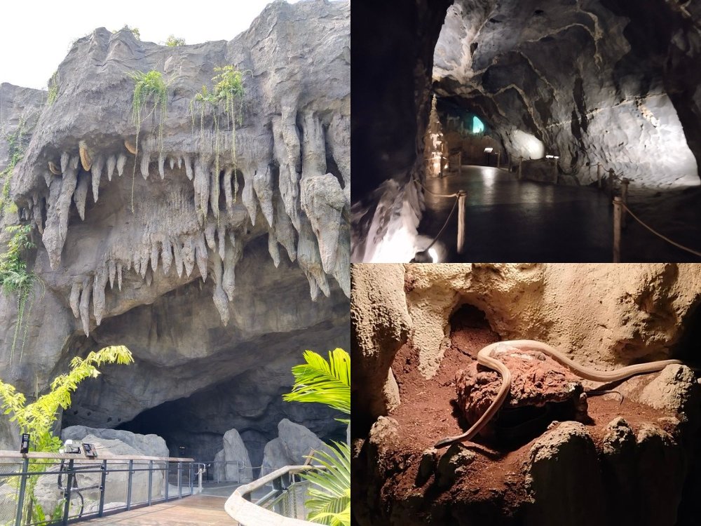 Be sure to visit the 220-meter-long underground cavern, which is a replica of the Mulu Caves in Sarawak, Malaysia. Here, you’ll find yourself enveloped by a cathedral of stone, with rock formations and stalagmites. Asian forest scorpions, Madagascar hissing cockroaches, cave racers, and blind cave fish can be found in this area.