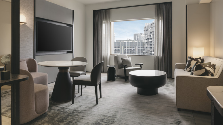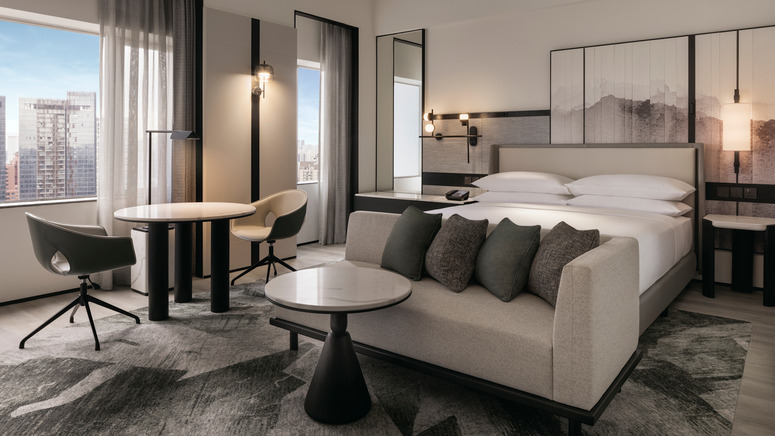 Amenities are top-notch, too. The hotel has a pool, a wellness studio for yoga sessions, and two 24-hour fitness centers equipped with treadmills and cardio machines.