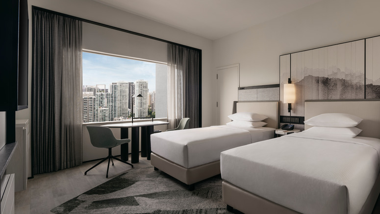 Their Twin Room (starts at S$406 or P17,985 per night) offers a sense of space and comfort with its monochromatic color palette and is complete with two twin-sized beds, a 55-inch TV, a Nespresso coffee machine, and a mini bar.