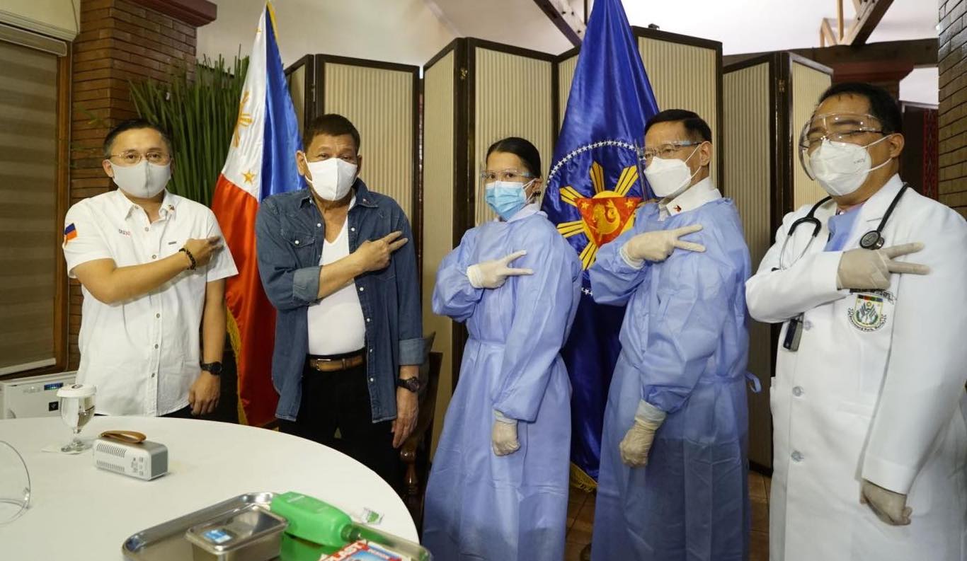 Senator Bong Go released photos on his Facebook page, saying the president was inoculated with Sinopharm, a vaccine that has yet to receive emergency use authorization by the Philippine FDA.