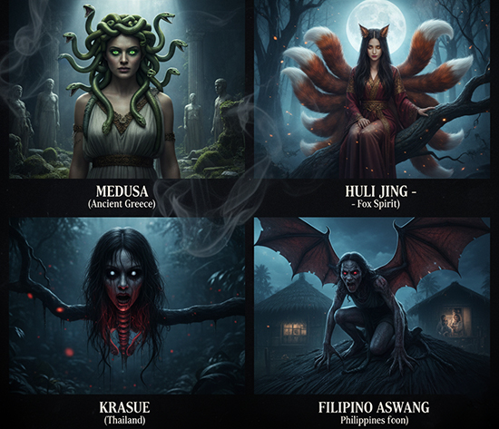 The Greeks portrayed the terrifying snake-woman, Medusa, to be the destroyer of man. Pandora, the first woman created by Haphaestus, god of the forge, shows that only chaos is brought from giving freedom to women. Interestingly enough, stories from the other side of the globe show that this trend is not exclusive to the West. Whispers of man in their tellings of Eastern horror stories almost always take the shape of a woman as well, many of which include Thailand’s disembodied demon woman Krasue, China’s Fox Spirit Huli Jing, or the famously known aswang from the Philippines.