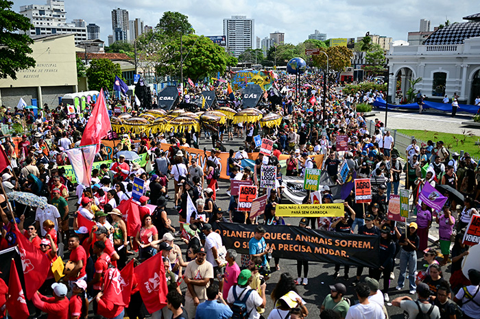 Tens of thousands of people thronged the streets of the Amazonian city hosting COP30 talks on Saturday, dancing to thumping speakers in the first large-scale protest at a UN climate summit in years.