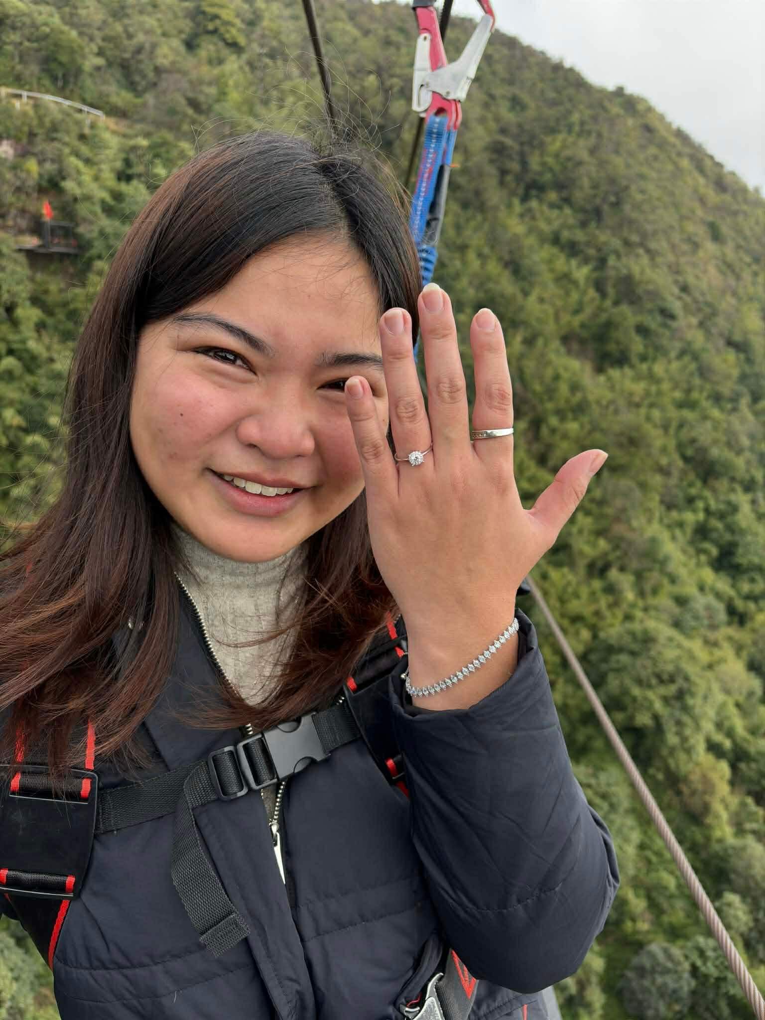 After he found out that his family was planning a vacation in Vietnam, Jules saw an opportunity to propose at the Rong May Glass Bridge in Sapa, which was constructed over the Hoang Lien Son Mountain cliff at the top of O Quy Ho Pass.