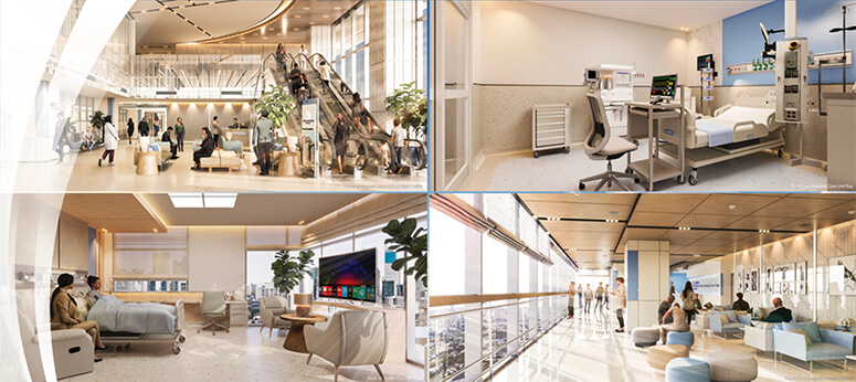The building will accommodate 132 well-designed patient rooms, with expanded outpatient, diagnostic, and therapeutic areas, advanced surgical suites, and dedicated spaces for specialized care services.