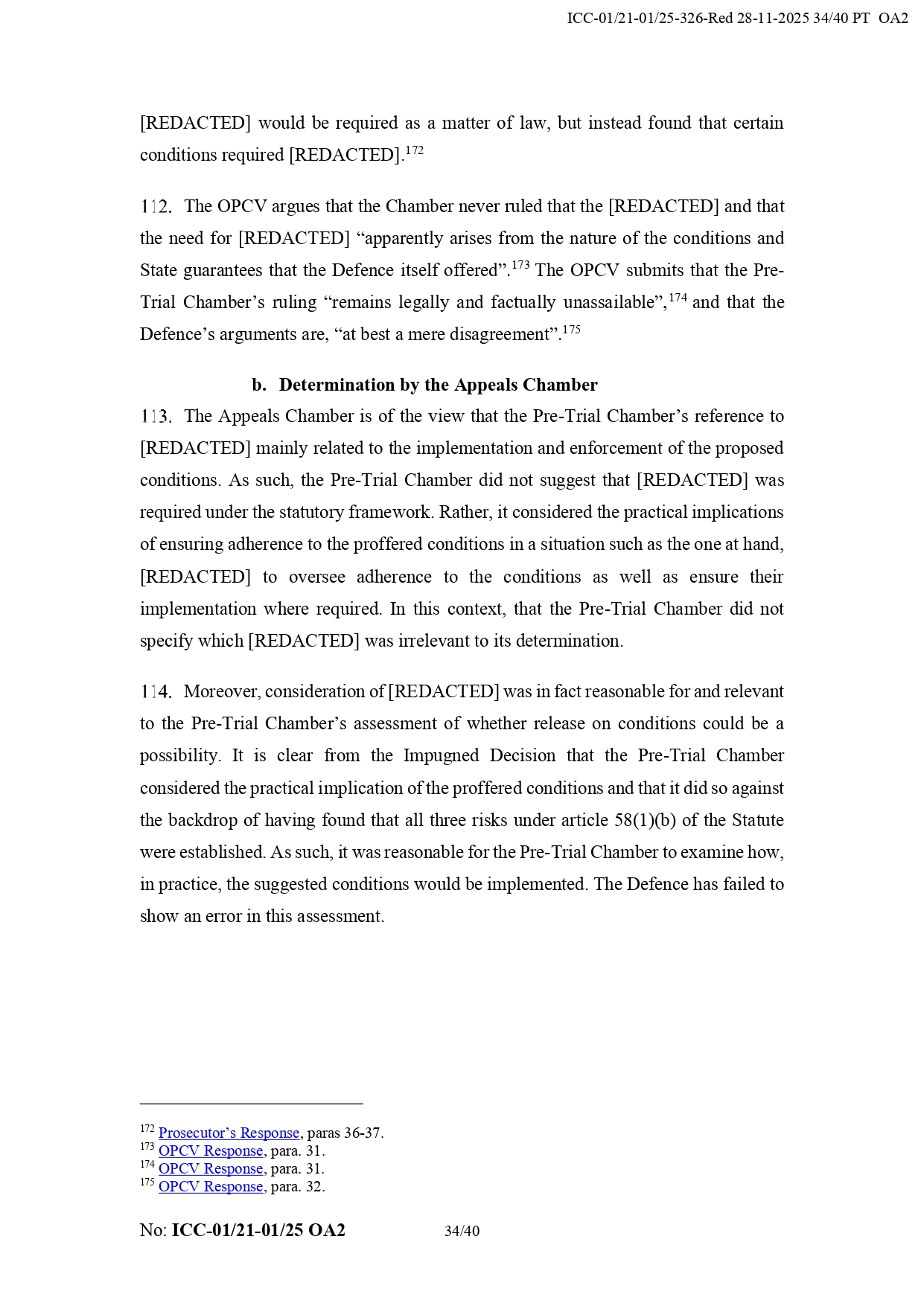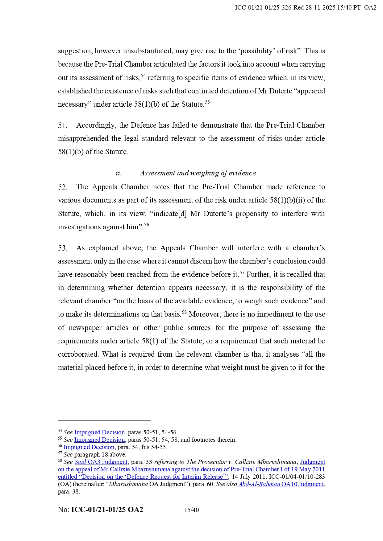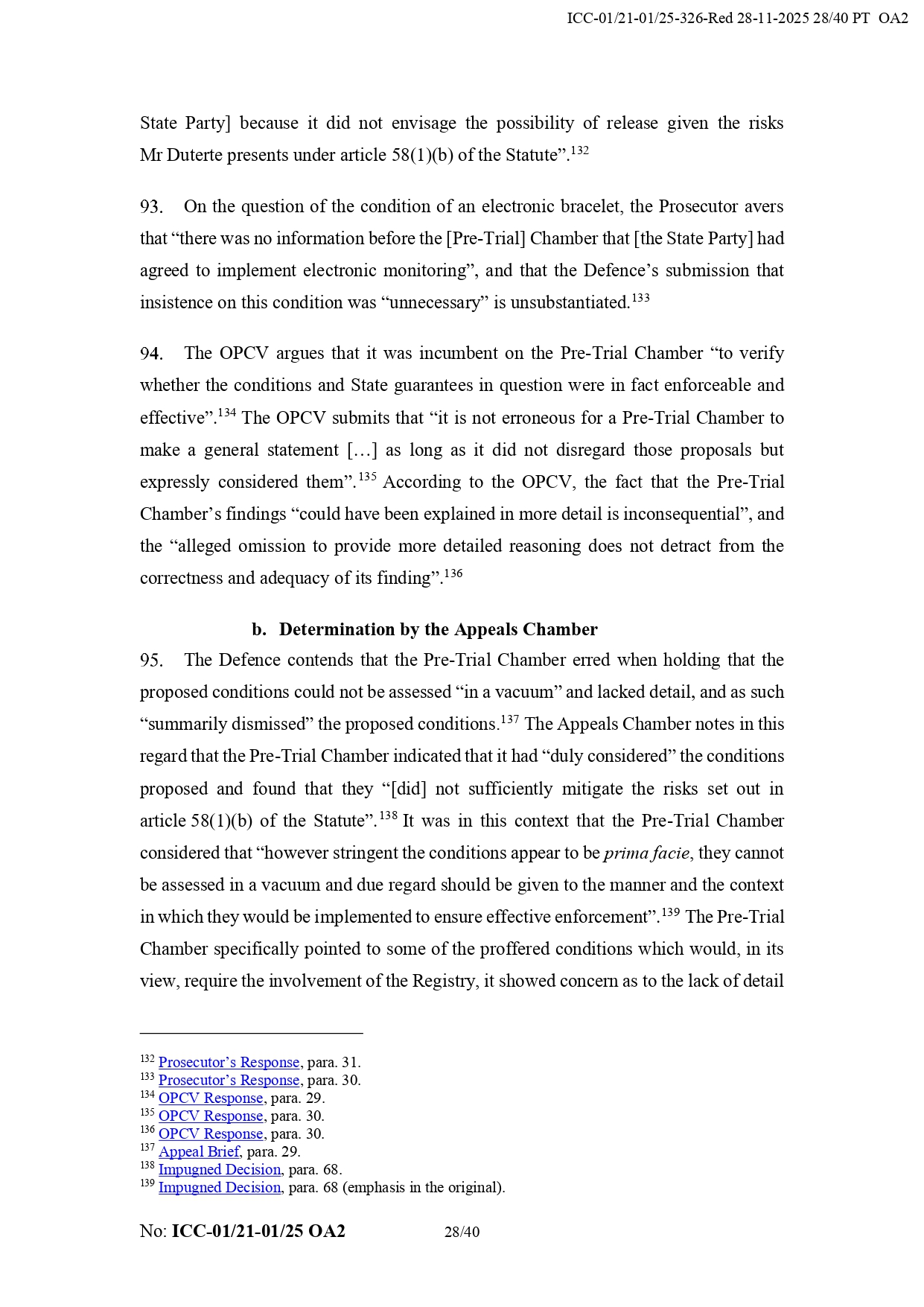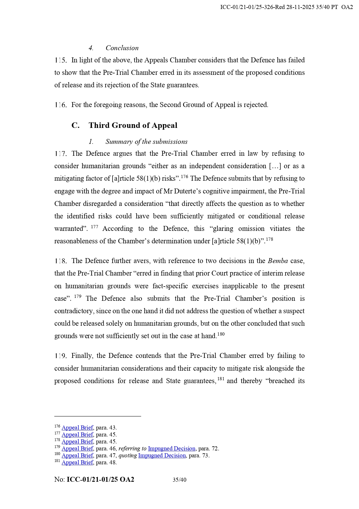 It added that Duterte “appears to have the necessary political contacts and appears to benefit a network of supporters from the Philippines.” It also noted that his legal team did not prove that the chamber failed to take humanitarian considerations into account regarding his detention.