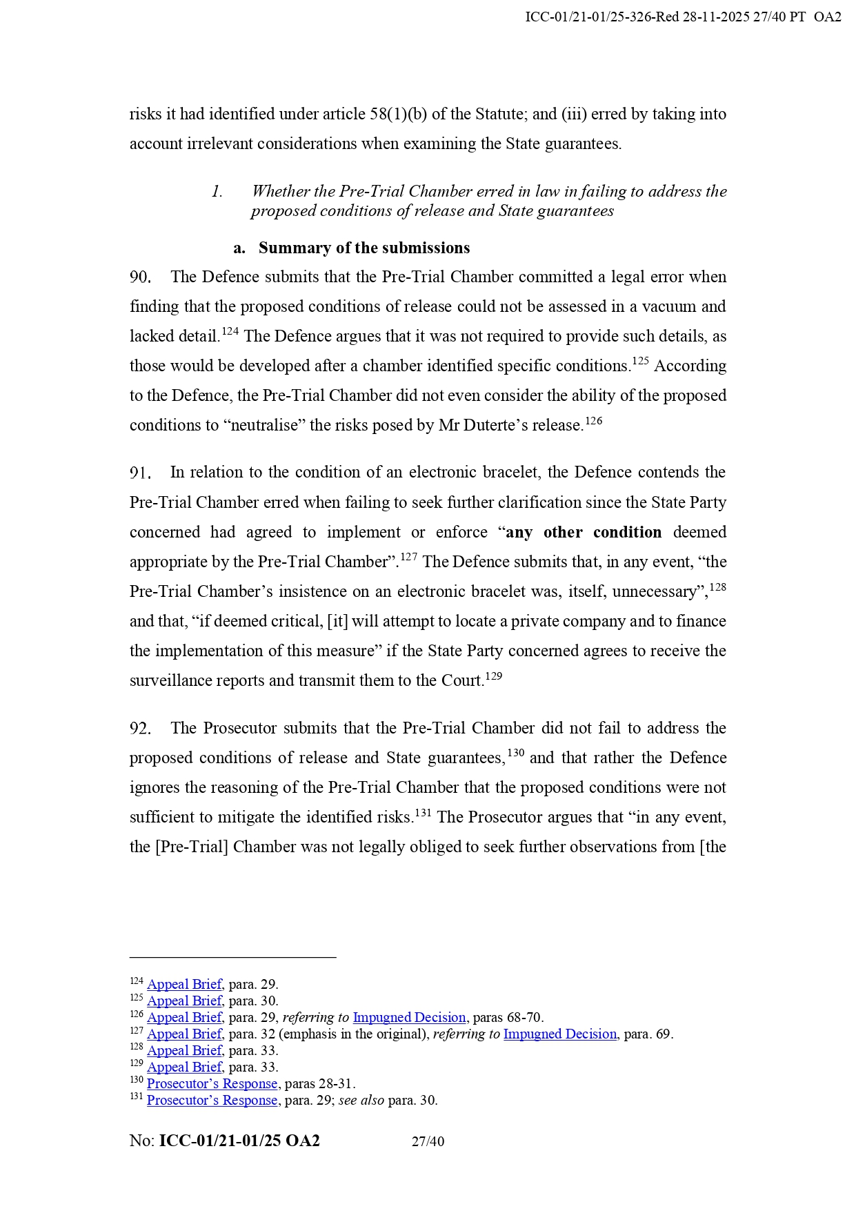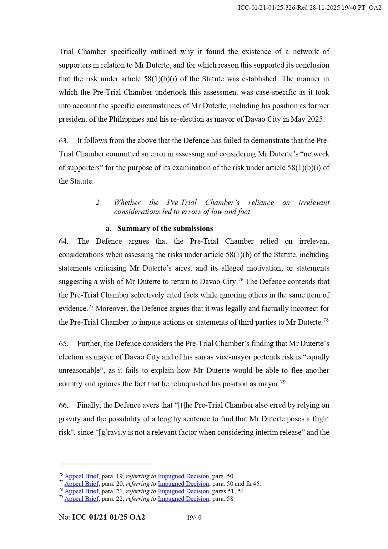 The ruling noted that Duterte’s legal team “failed to demonstrate” any mistakes in the Pre-Trial Chamber I's conclusion that the former president possesses the financial resources and influence that would allow him to flee or avoid prosecution.
