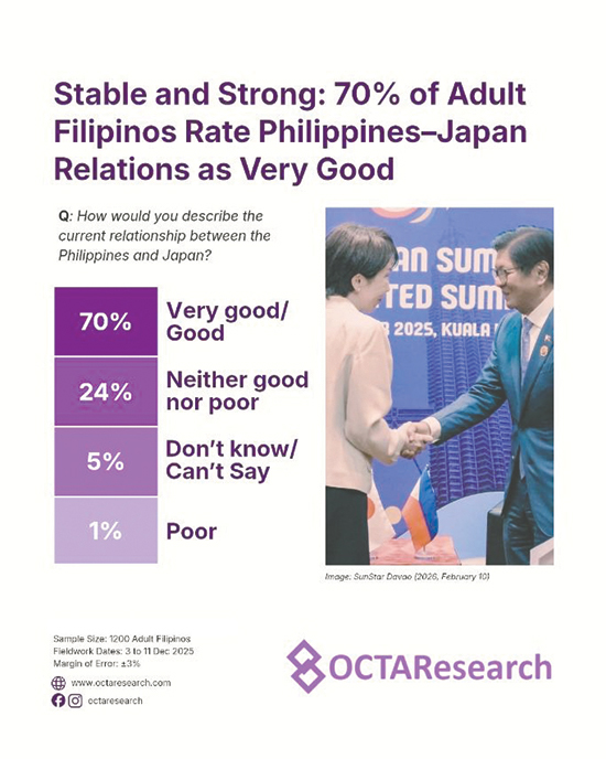 The survey findings suggest that the Philippines–Japan relationship stands on solid ground.