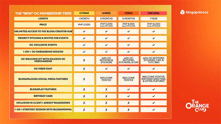 Are you a content creator ready to unlock exclusive access, priority opportunities, and expert mentorship? The Orange Club is your next step. Learn more at blogapalooza.ph/theorangeclub or reach out to us at orangeclub@blogapalooza.ph to get started.