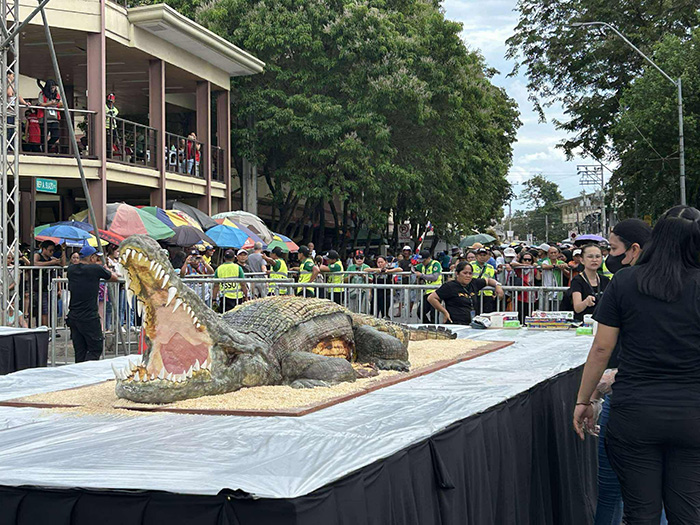 According to a News5 report, the prayer rally in Davao included free lechon for attendees and a cake shaped like a crocodile.