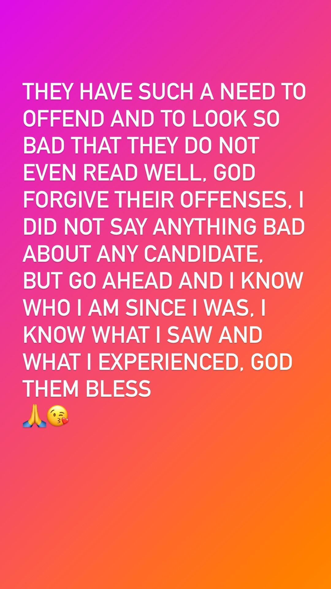 Marin said in the post: "I am very sorry if they wanted to put on a whole show when the words are obvious and clear that I have never attacked any of the candidates."