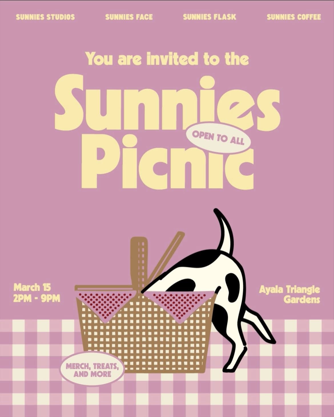 Guests can enjoy picnic snacks from partner vendors, games, and playful installations throughout the venue. Attendees can also score up to 20% off select products from Sunnies Studios, Sunnies Flask, and Sunnies Face during the one-day event.