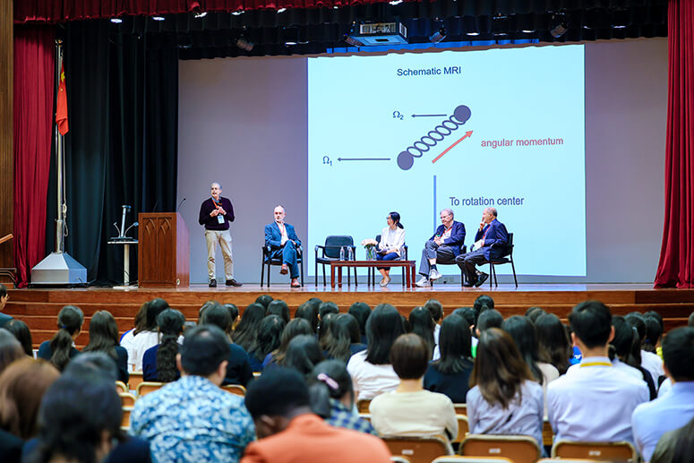 Attendees varied from undergraduate students to postdocs pursuing further research. Also part of the four-day program was a dialogue between the laureates and secondary school students, who shared research of their own and toured the guests around the campus science lab. In the session, the laureates imparted sobering advice. “Problems appear more difficult than they really are,” said Professor Steven Balbus, awarded the Shaw Prize in Astronomy in 2013. “Educate yourself broadly,” added Professor John Peacock, winner of the same prize in 2014.