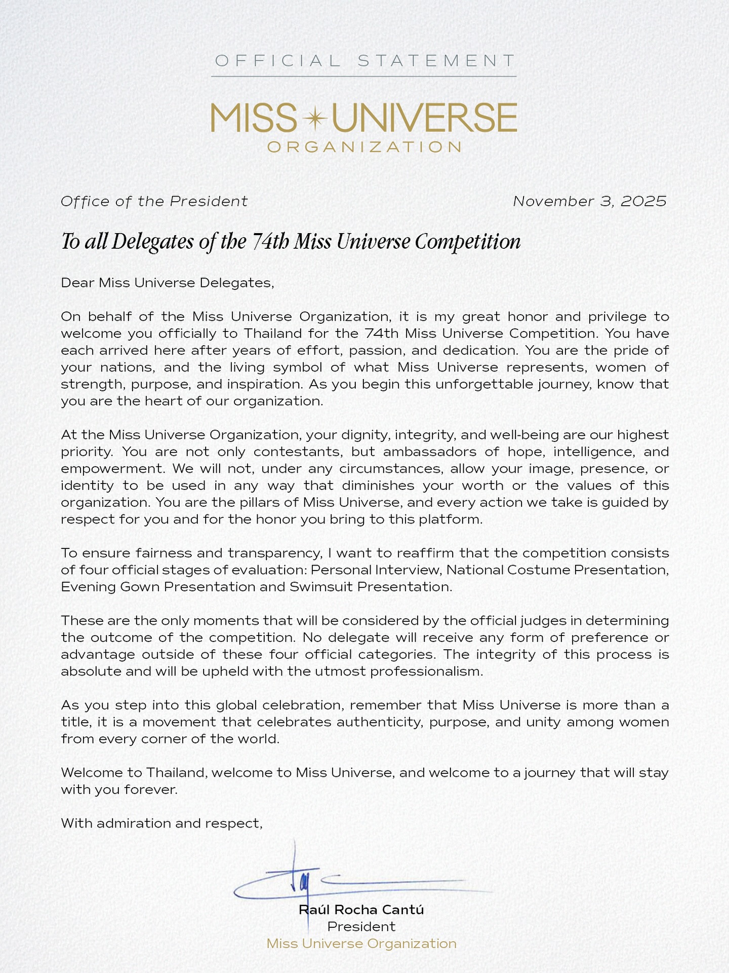 The Miss Universe Organization reasserted that there are only four stages of evaluation for the competition.