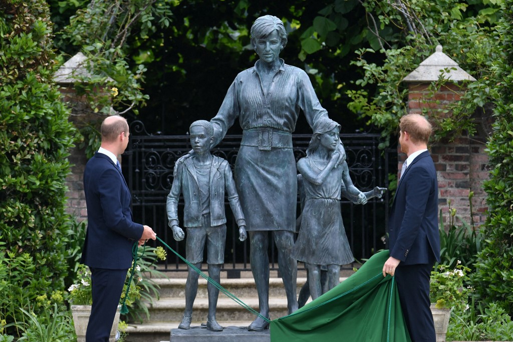 The brothers took the wraps off the bronze likeness in the sunken garden of Diana’s former London home at Kensington Palace, in a stripped-back ceremony due to the coronavirus pandemic.