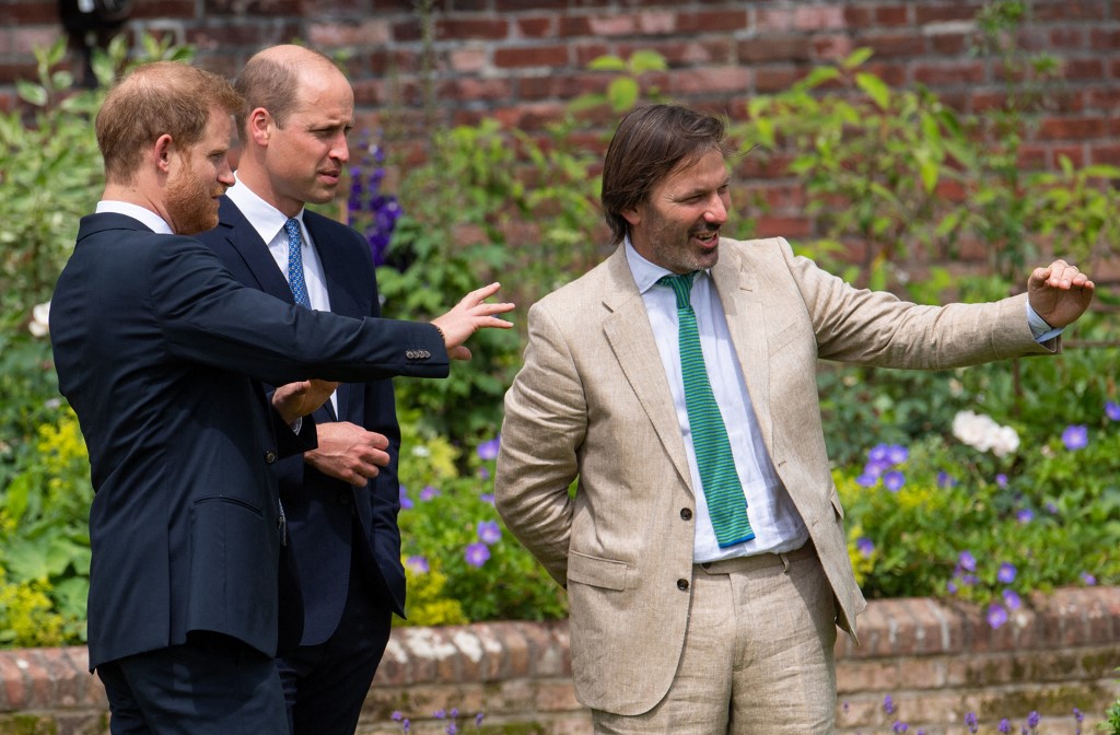The brothers—dressed in dark suits—were seen smiling and chatting to guests, including the sculptor, Ian Rank-Broadley, and garden designer Pip Morrison. The garden has been planted with more than 4,000 flowers, including Diana’s favorite, forget-me-nots.