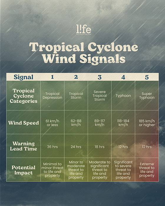 Meanwhile, TCWS No. 4 is issued for Typhoons or higher, having typhoon-force winds of 118 to 184 kilometers per hour. Its warning lead time is 12 hours.