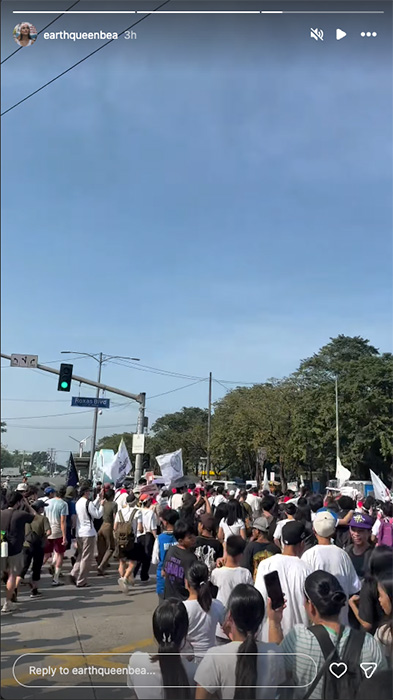 Filipino American beauty queen Bea Millan Windorski, who was crowned Miss Earth Water 2024, shared a video of protesters walking along Roxas Boulevard in her Instagram stories.