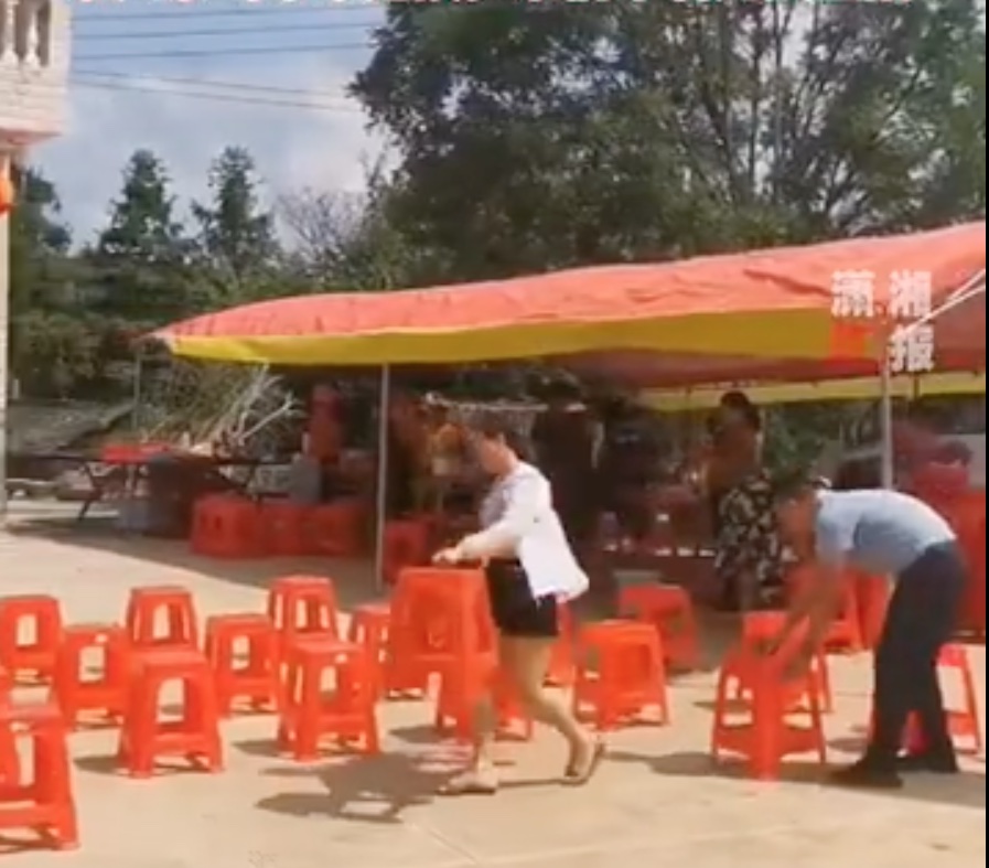 Liao’s parents set up a live viewing event on the morning of her match, putting up a tent, chairs, and a large TV screen. According to an account on Chinese social media platform Weibo, Liao’s parents also prepared a feast by slaughtering chickens and sheep for the festive viewing celebration.