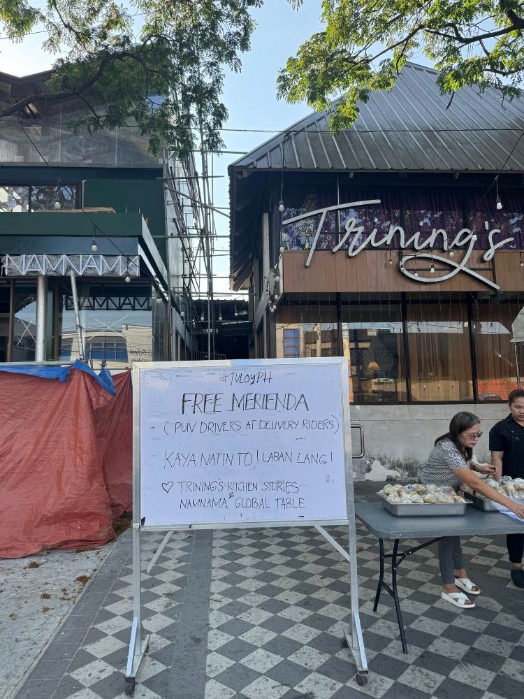 Trining’s Kitchen Stories Marikina will be distributing free meals on April 8 and 10 to drivers of public utility buses, jeepneys, and tricycles, as well as delivery riders from services such as Grab, Joyride, Lalamove, and J&T, among others.